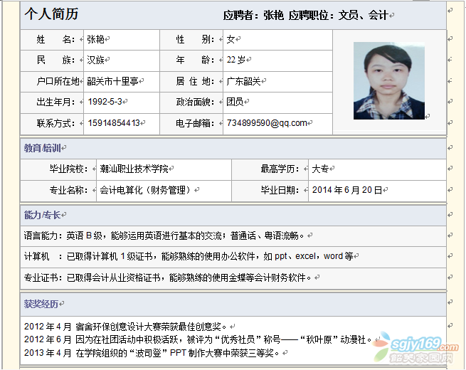 正文摘要:已經取得會計從業資格證書,但是在從事會計工作方面的經驗暫無,之前2013年9月-2014年7月在韶關市同樂網游代練服務部從事過文員、銷售、客服的工作。我希望能找到符合專業的工作,希望能有培訓的機會。希望工作有國 ... |
