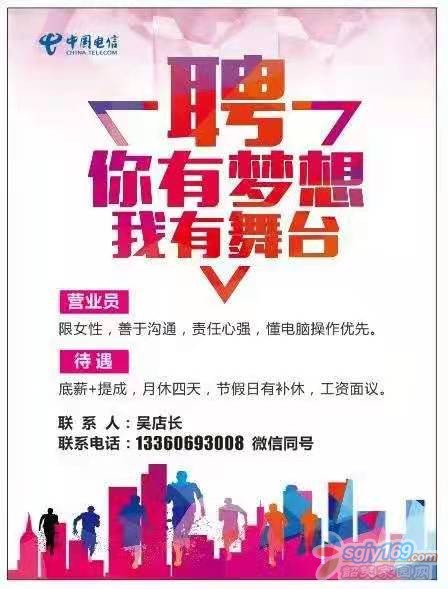 正文摘要:本帖最后由 武江區歐杰通訊 于 2021-3-23 11:10 編輯 招聘電信營業員,業務員各兩名,月休4天,工作地點沙洲尾鴻洲花園,有意者請撥打13360693008,微信號13640003885,謝謝 |